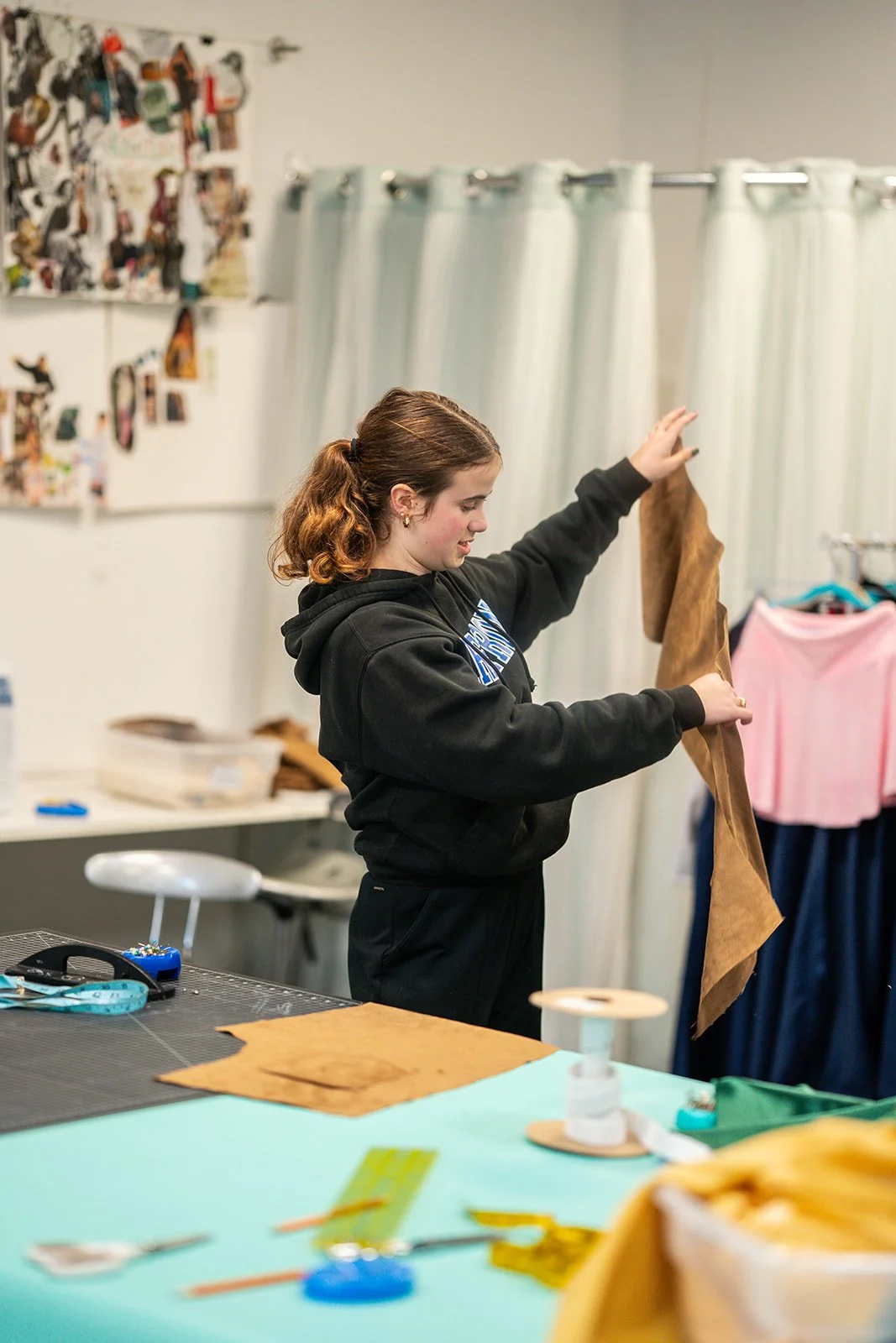 Each designer chooses his/her unique project. Students learn to sketch, learn about textiles, learn to hand sew and operate sewing machines.
